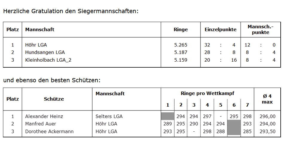 Endergebnis 25 m Pistole / Revolver Gruppe II
